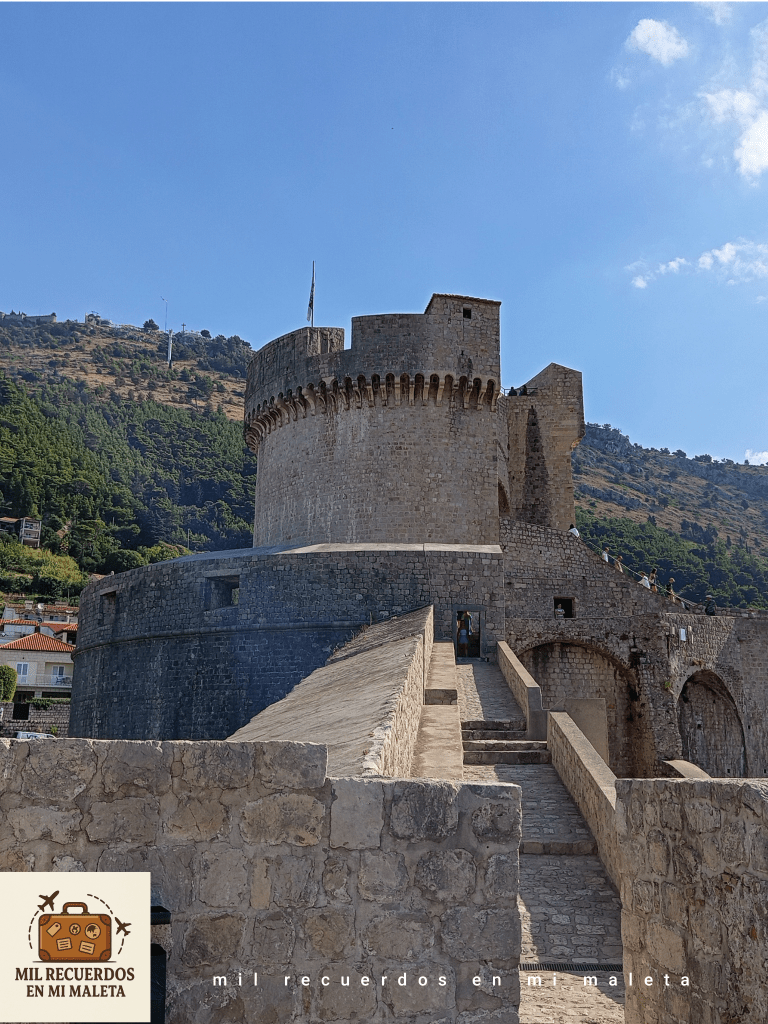 Comenzamos el recorrido por la muralla de Dubrovnik, una ruta circular que rodea por completo el casco antiguo. En algunos tramos el camino se estrecha tanto que solo permite pasar de uno en uno ¡ale, todos en fila!, lo que le da un encanto especial, y también algún que otro atasco si hay mucha gente😅. Nada más empezar, no nos fijamos en el cartel que indicaba la dirección obligatoria del recorrido y nos lanzamos de frente haciéndolo al revés! No tardamos mucho en darnos cuenta de nuestro error y dimos vuelta ¡Gajes del viajero!🙈