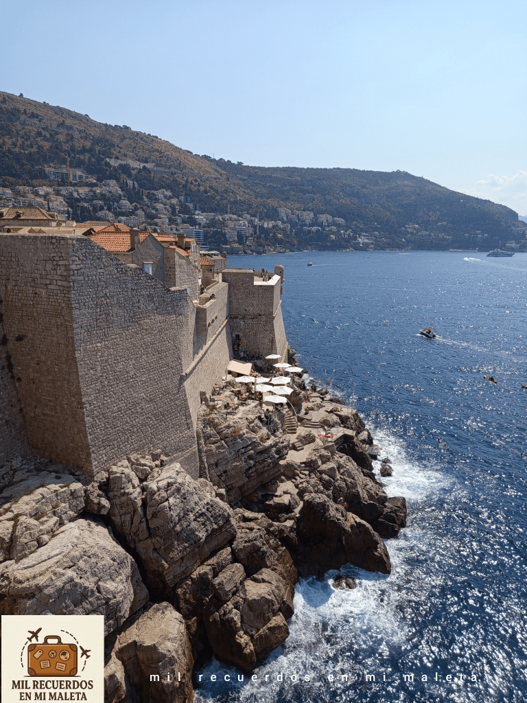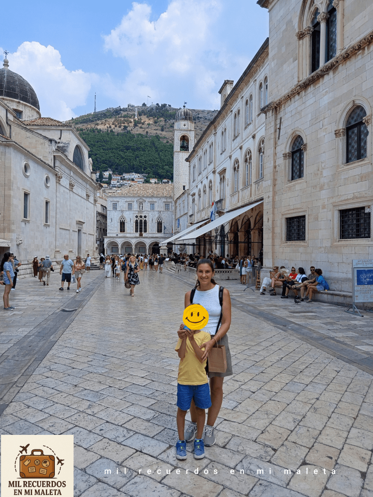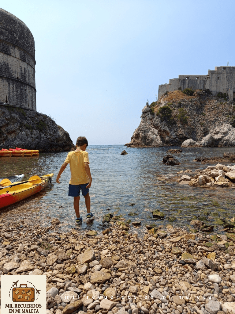 Decidimos aprovechar esas primeras horas, cuando las calles aún no estaban abarrotadas y hacía »menos calor» para recorrer las murallas de Dubrovnik, una de las experiencias obligadas si visitas la ciudad. La entrada cuesta unos 40€ por adulto, mientras que los niños hasta 7 años entran gratis, así que no tuvimos que pagar por la entrada de nuestro peque. Puede parecer caro (y lo es), pero las vistas que ofrecen del mar Adriático, de los tejados rojizos y cada rincón del casco histórico lo justifica al 100%.