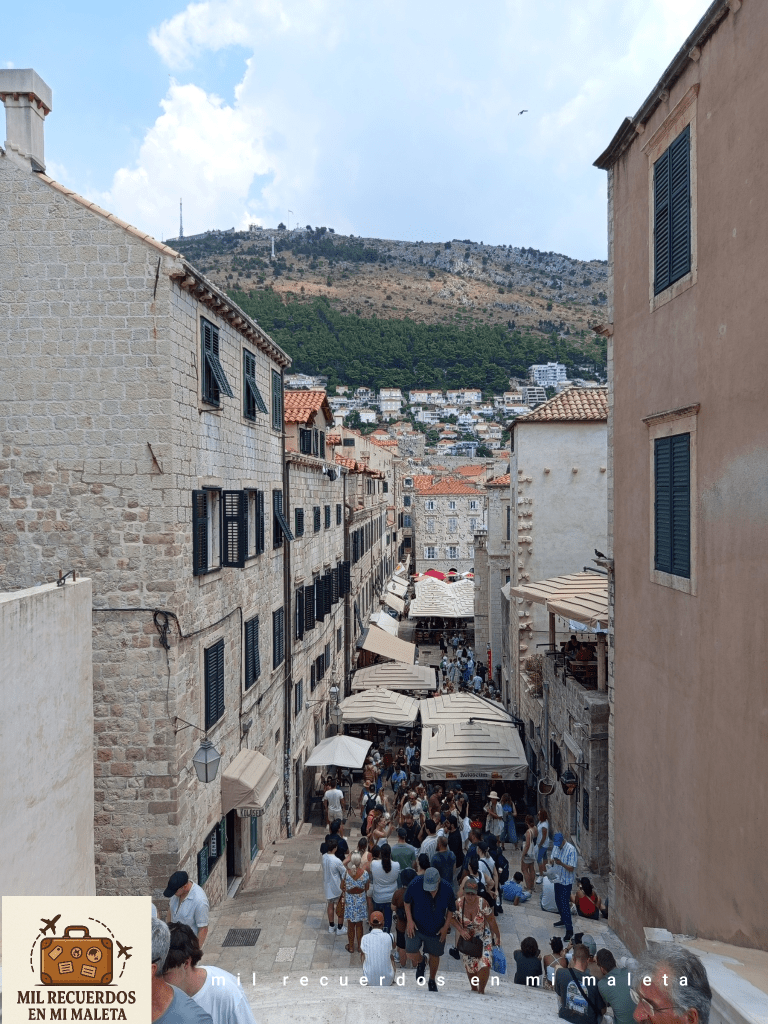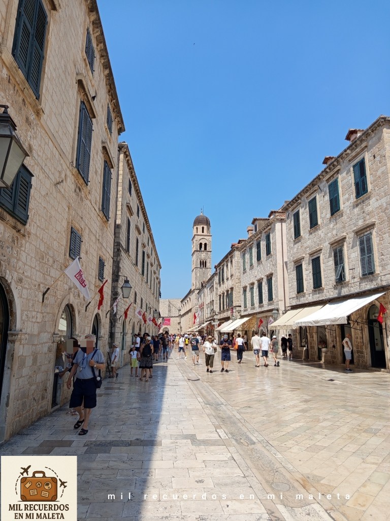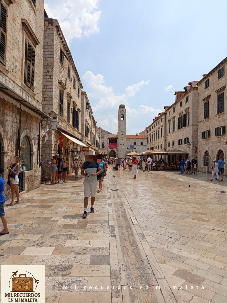 Pasear por la calle Stradun, la arteria principal de la ciudad, es toda una experiencia: una avenida de piedra pulida por los siglos y el paso de miles de viajeros, rodeada de tiendas, cafeterías y rincones, calles estrechas que invitan a detenerse en cada momento. Aquí se concentra la vida de la ciudad, y caminar por ella es casi obligatorio para empezar a orientarse y dejarse llevar por el encanto de Dubrovnik.