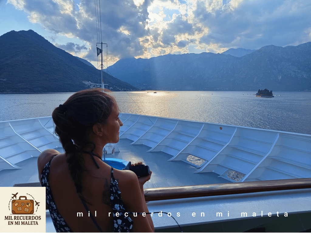 Con las energías ya gastadas pero con el corazón lleno de recuerdos, emprendimos el camino de regreso al barco. Y aunque parecía que el día había terminado, todavía nos esperaba un último regalo: el atardecer navegando por la bahía de Kotor en sentido inverso.