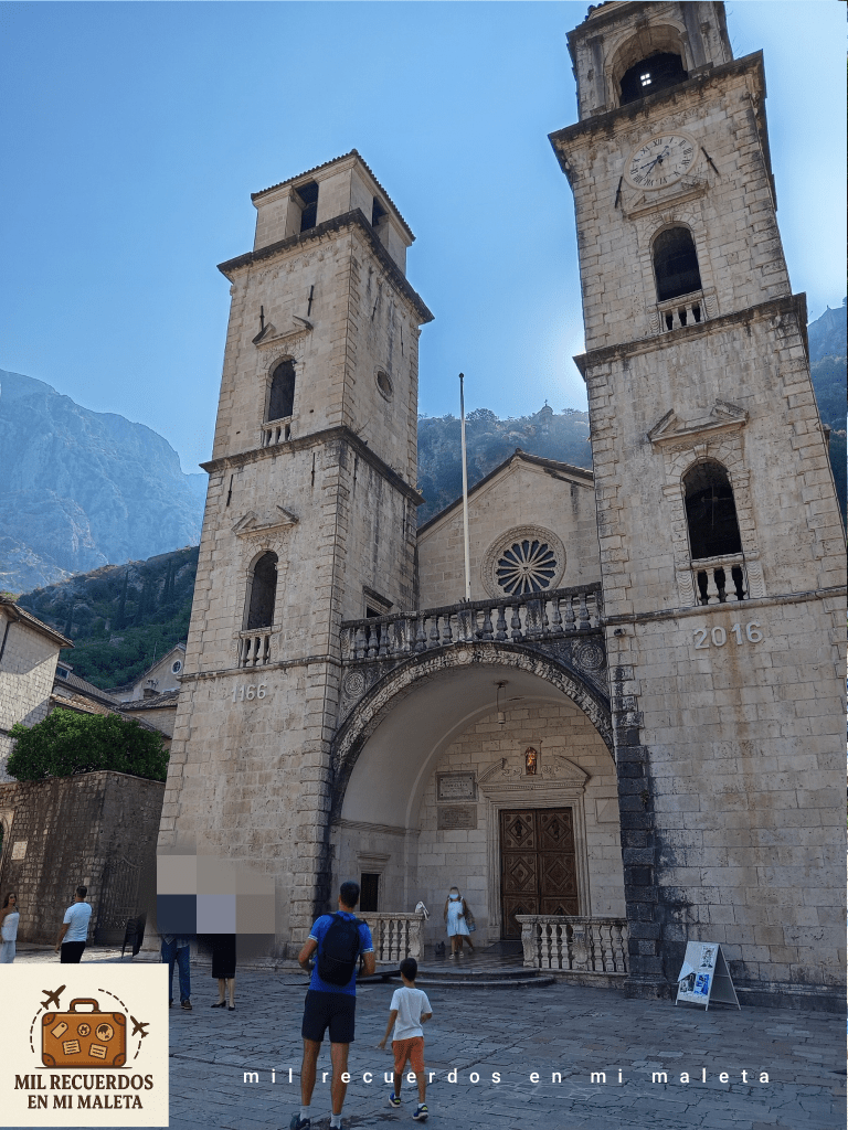Tras atravesarla, lo primero que nos llamó la atención fue la Catedral de San Trifón, con su elegante fachada románica y las montañas que la enmarcan majestuosamente.