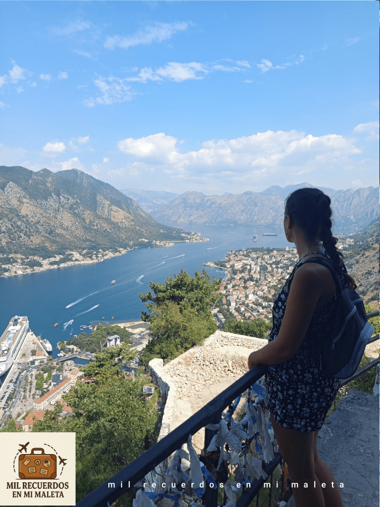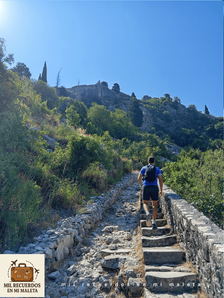 Queríamos aprovechar la »frescura» de la mañana (ejem….hacía un calorazo) para recorrer las escaleras de la muralla de Kotor, un camino histórico que asciende más de 1.350 peldaños y un desnivel de aproximadamente 260 metros, ofreciendo vistas que literalmente te dejan sin aliento.