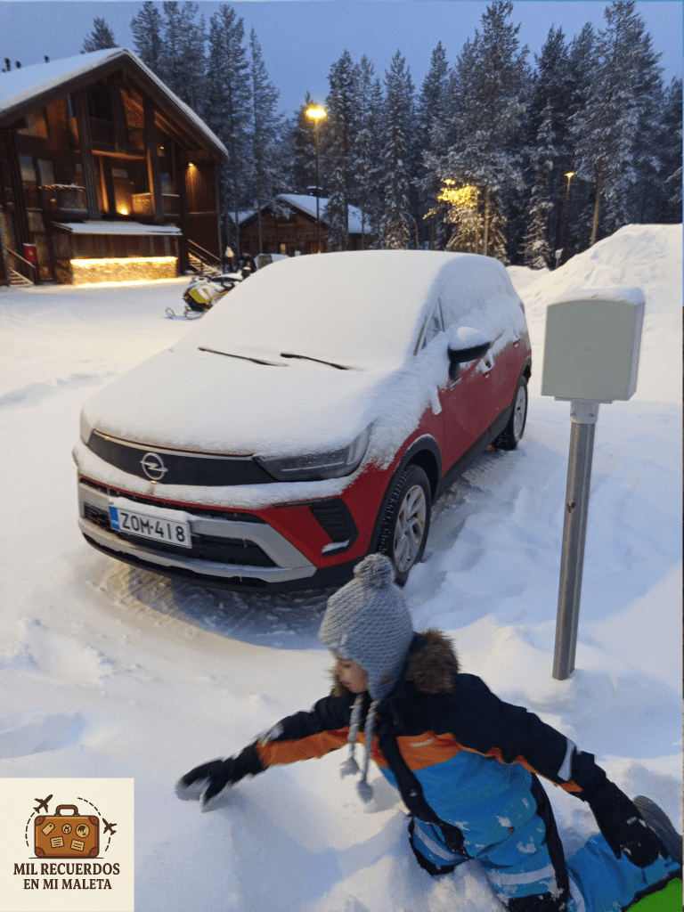 Volvimos a descansar un ratito al apartamento. Allí nuestro coche estaba cubierto de la nieve que había caído durante la mañana.